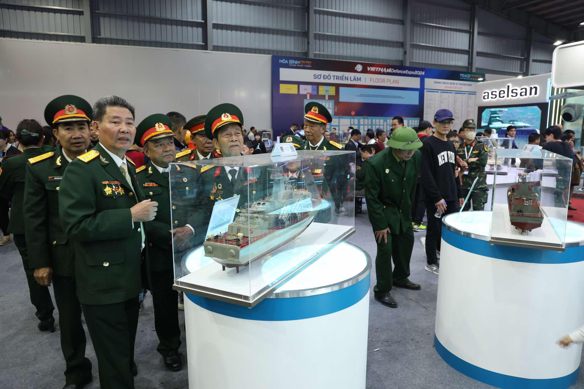 Các cựu chiến binh xem mô hình tàu quân sự do Việt Nam sản xuất.